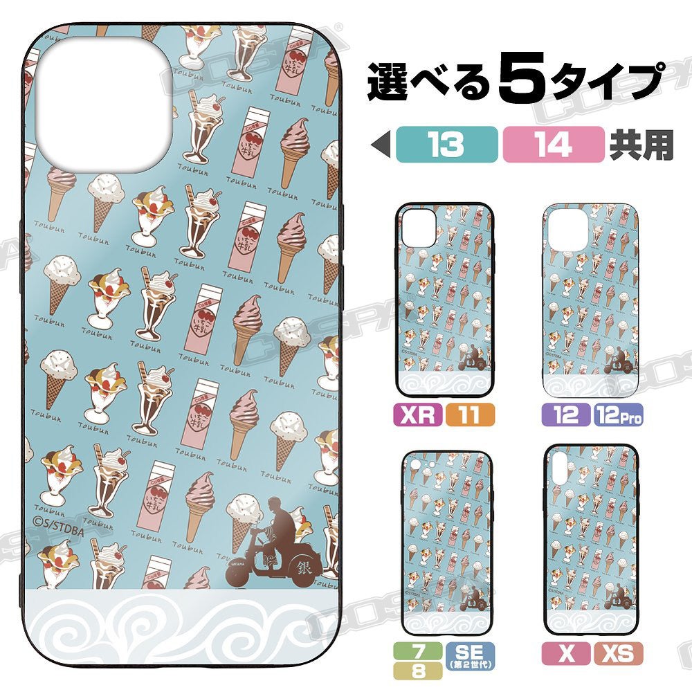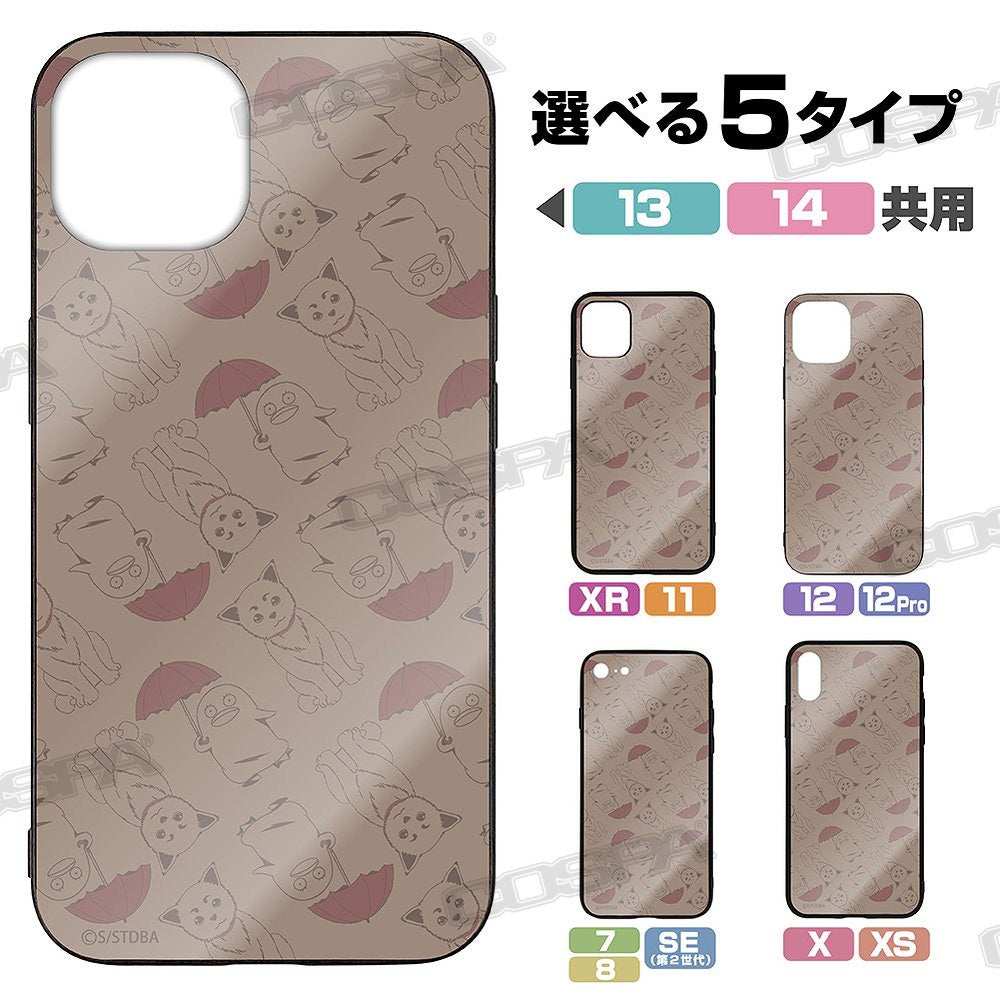 ■銀さんと糖分/真選組/定春&エリザベス 総柄 強化ガラスiPhoneケース