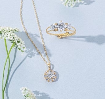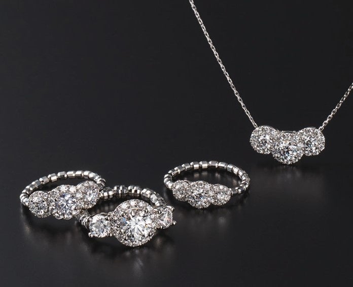 創業30年以上のダイヤモンド輸入卸の製造メーカーが手掛けるダイヤモンドブランド。今回は中央に配した大粒のダイヤモンドを、さらにダイヤモンドで取り巻いた贅沢なリングやネックレスを紹介します。