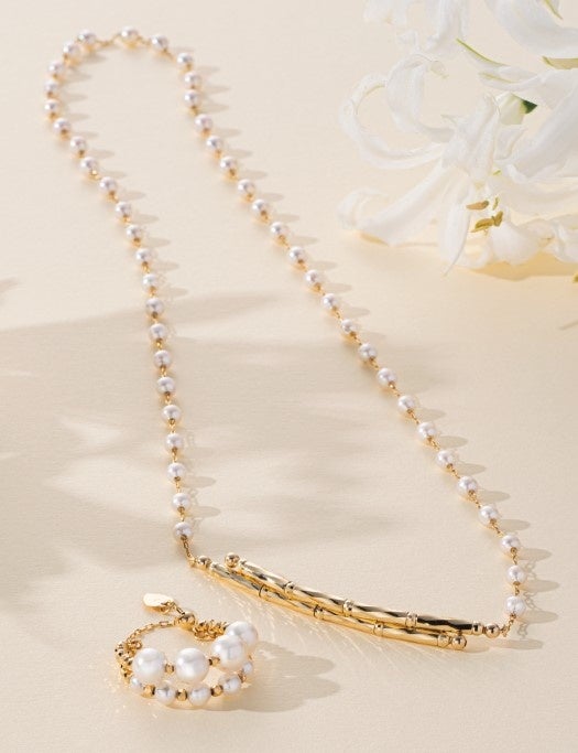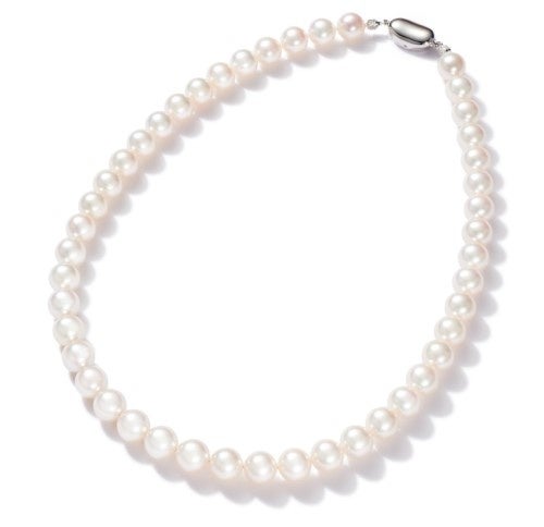 創業からパール一筋の老舗メーカーがアコヤパールのアイテムを中心に展開するブランドより、国産アコヤパールの中でも「花珠」と呼ばれる高品質な真珠を連ねたネックレスを紹介。気品あるテリとツヤで胸元を華やかに彩ります。