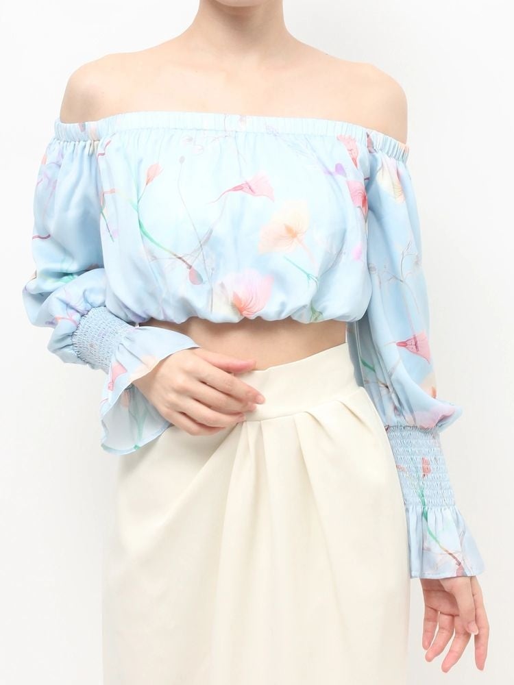 クロップド丈にしたことで総柄でも着やすく、コーデの主役になるトップスになります。