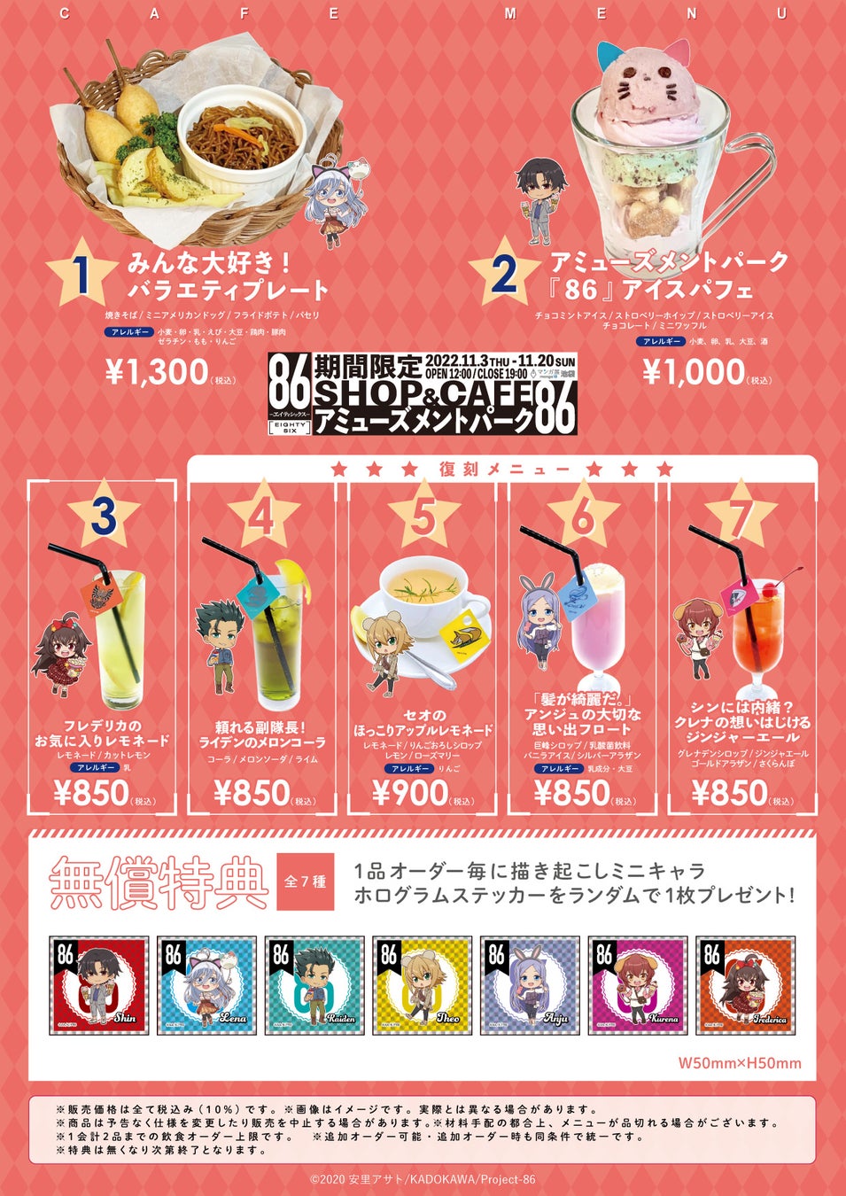 イベントグッズ&飲食メニュー解禁!!11/3(木・祝)より『TVアニメ「86ーエイティシックスー」期間限定SHOP&CAFE【アミューズメントパーク『86』】が東京・池袋にて開催!
