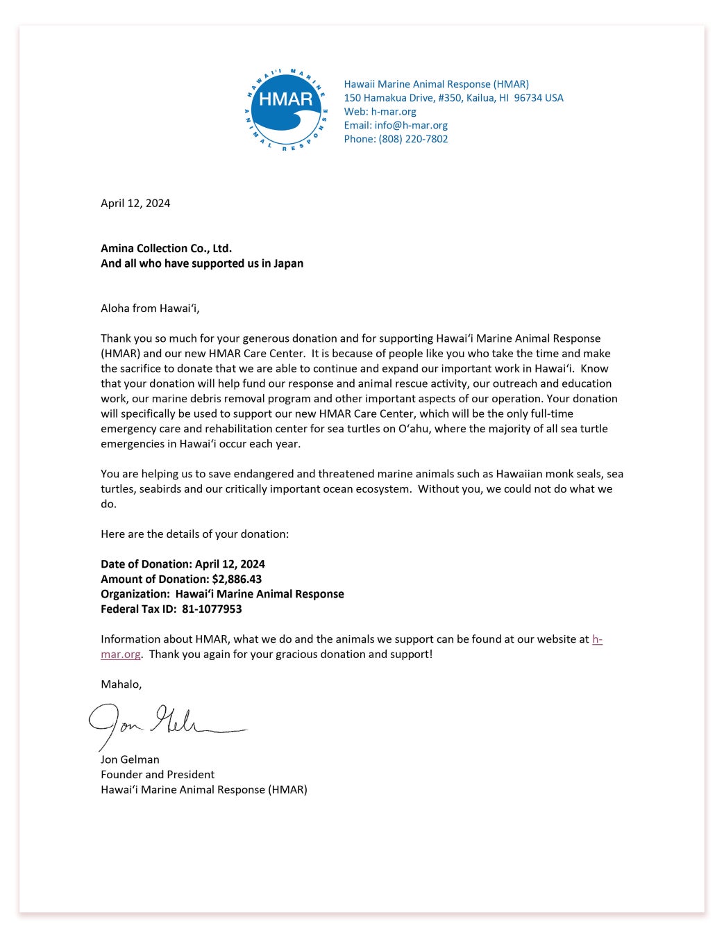 株式会社アミナコレクション(本社:神奈川県横浜市 代表取締役社長 進藤さわと)が展開しているハワイアンブランド「Kahiko(カヒコ)」「Maunaloa(マウナロア)」は、アロハの輪でひとつに繋がる3つのプロジェクトに取り組んでいます。ここでは、2024年4月時点での活動報告をいたします。