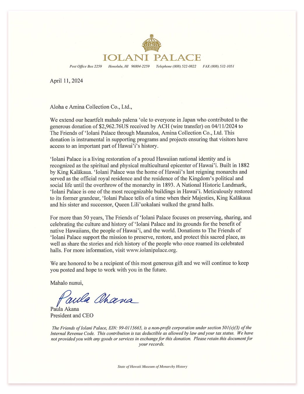 3、「Mālama for IOLANI PALACE」~from 2021~