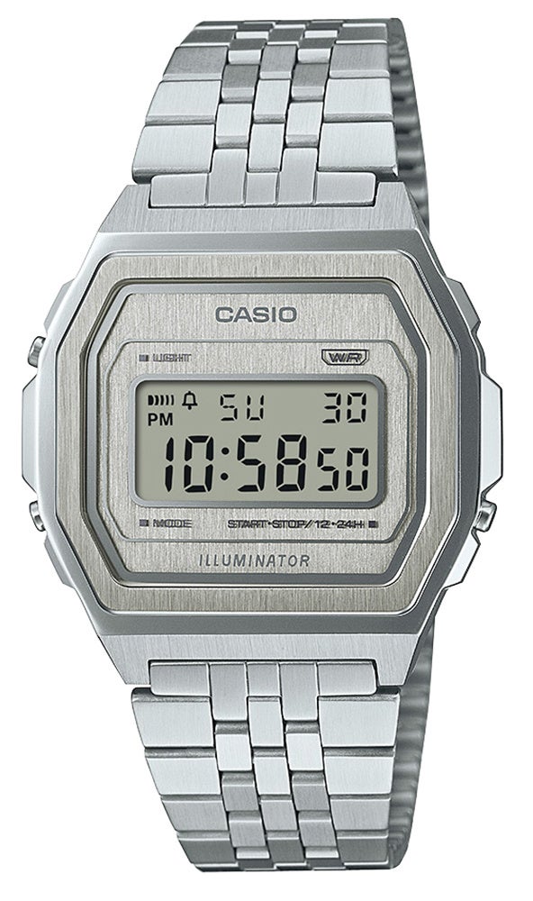 デジタルウォッチだけど、カジュアルすぎない。ヘアライン仕上げのシャープな佇まいが魅力。