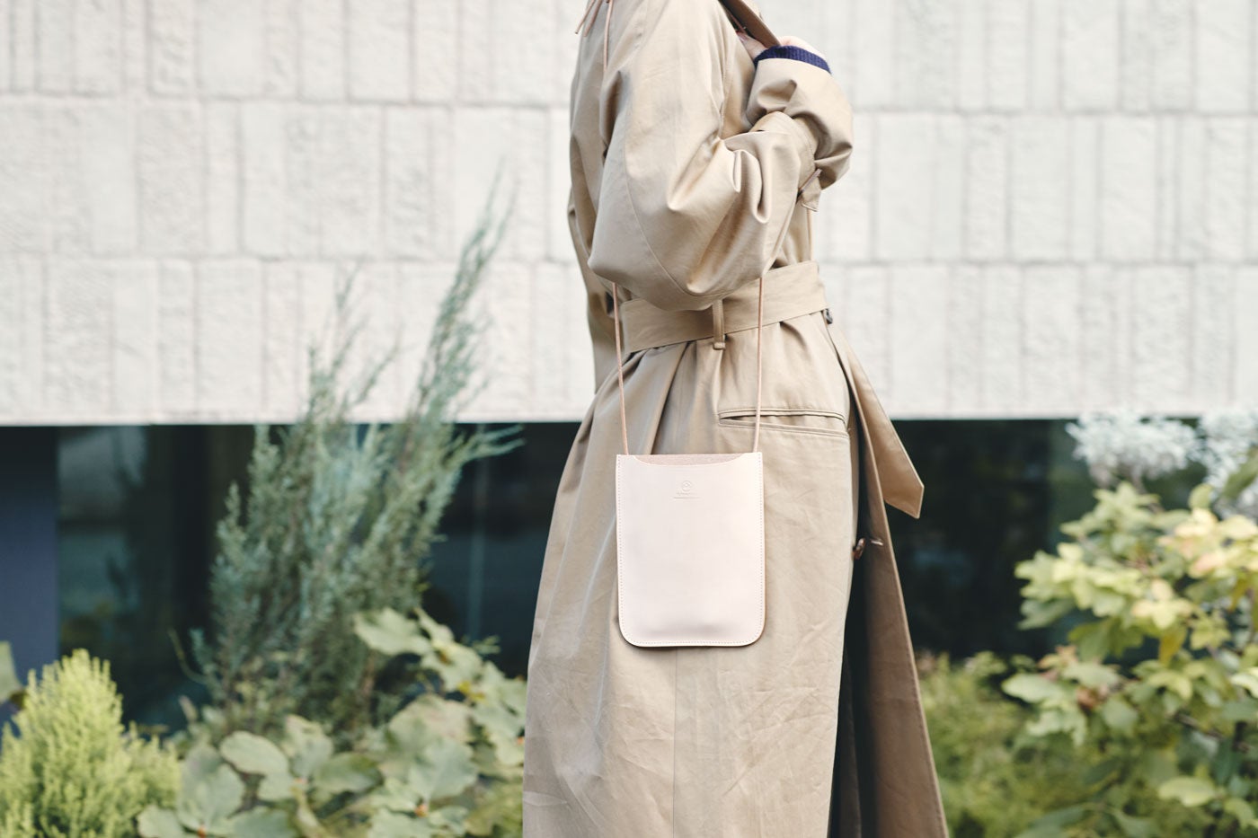 こちらはサブバッグとしての使用を想定される方が多いサイズ感のバッグながら、キャッシュレス化が進んだ現代ではスマートフォンと薄マチ財布があれば十分という方にとって最適なミニマルバッグです。