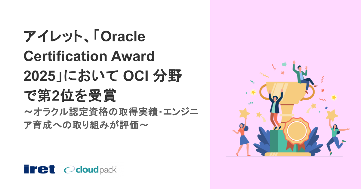システム・アプリケーションの開発、グラフィック・UI/UX デザイン制作からインフラの構築・運用までをワンストップで提供するアイレット株式会社(本社:東京都港区、代表取締役社長:岩永 充正、以下 アイレット)は、日本オラクル株式会社が主催する「Oracle Certification Award 2025」において、Oracle Cloud Infrastructure(OCI/PaaS)認定資格部門で第2位を受賞しました。今回の受賞は初めてとなります。