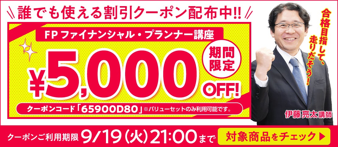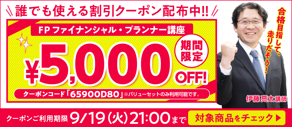 【期間限定】FP(ファイナンシャルプランナー)講座 誰でも使えるクーポン 配布中!