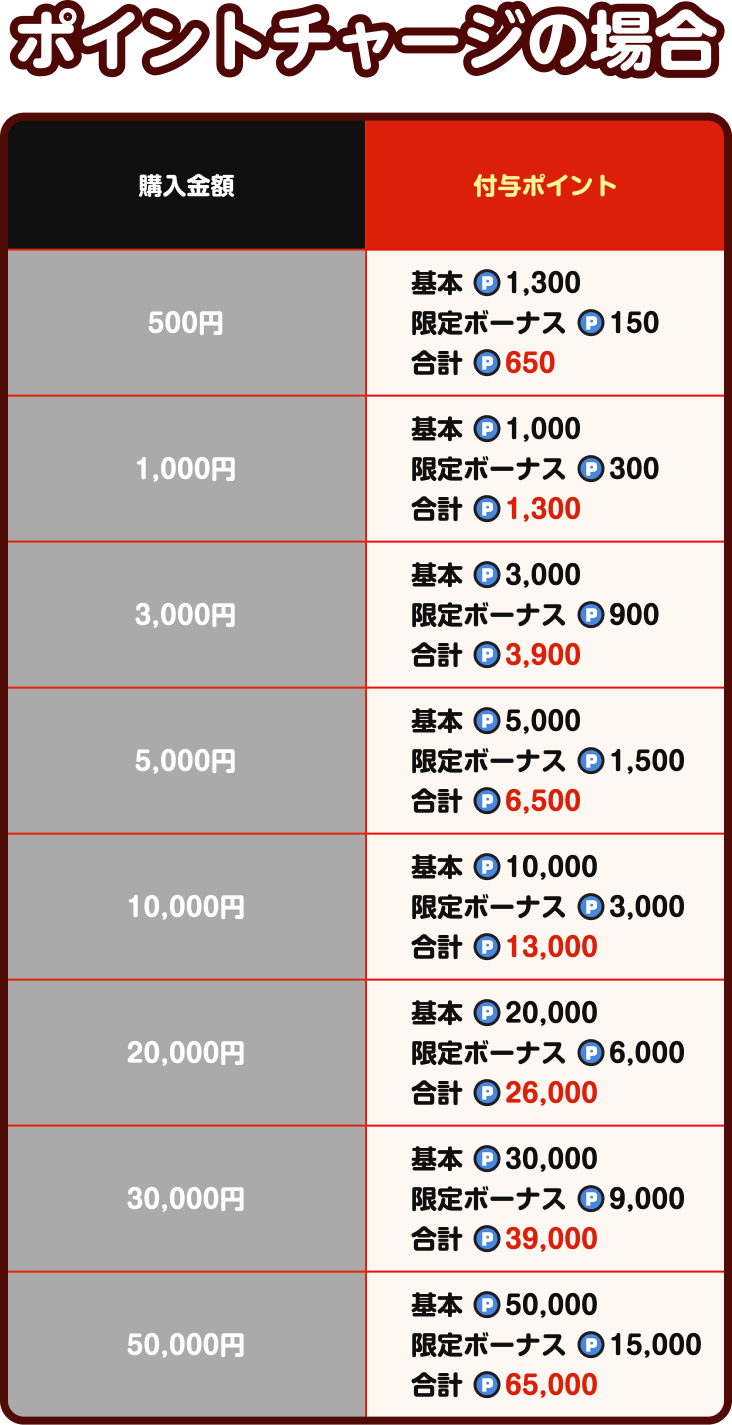 さらに、ポイントチャージでは、500 円以上のポイント購入につき、それぞれ 30%のポイント還元を実施します。