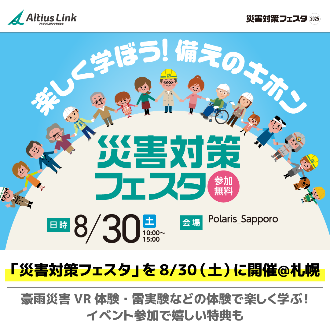アルティウスリンク、「災害対策フェスタ」を8/30(土)に開催@札幌