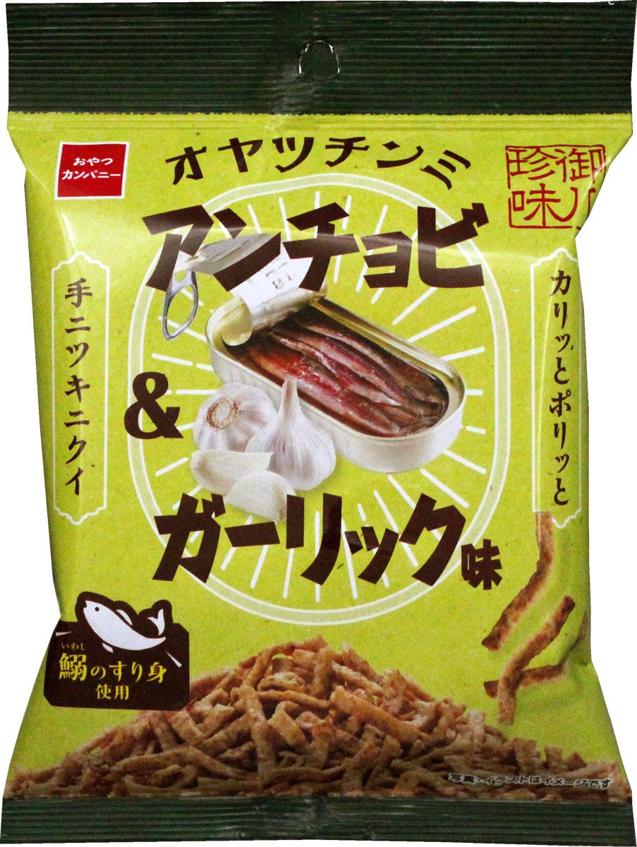 定番フレーバーのイワシのすり身を練り込んだ「アンチョビ&ガーリック味」は、熟成されたイワシの濃厚な旨味と塩気、ガーリックの風味がワインとの相性抜群。