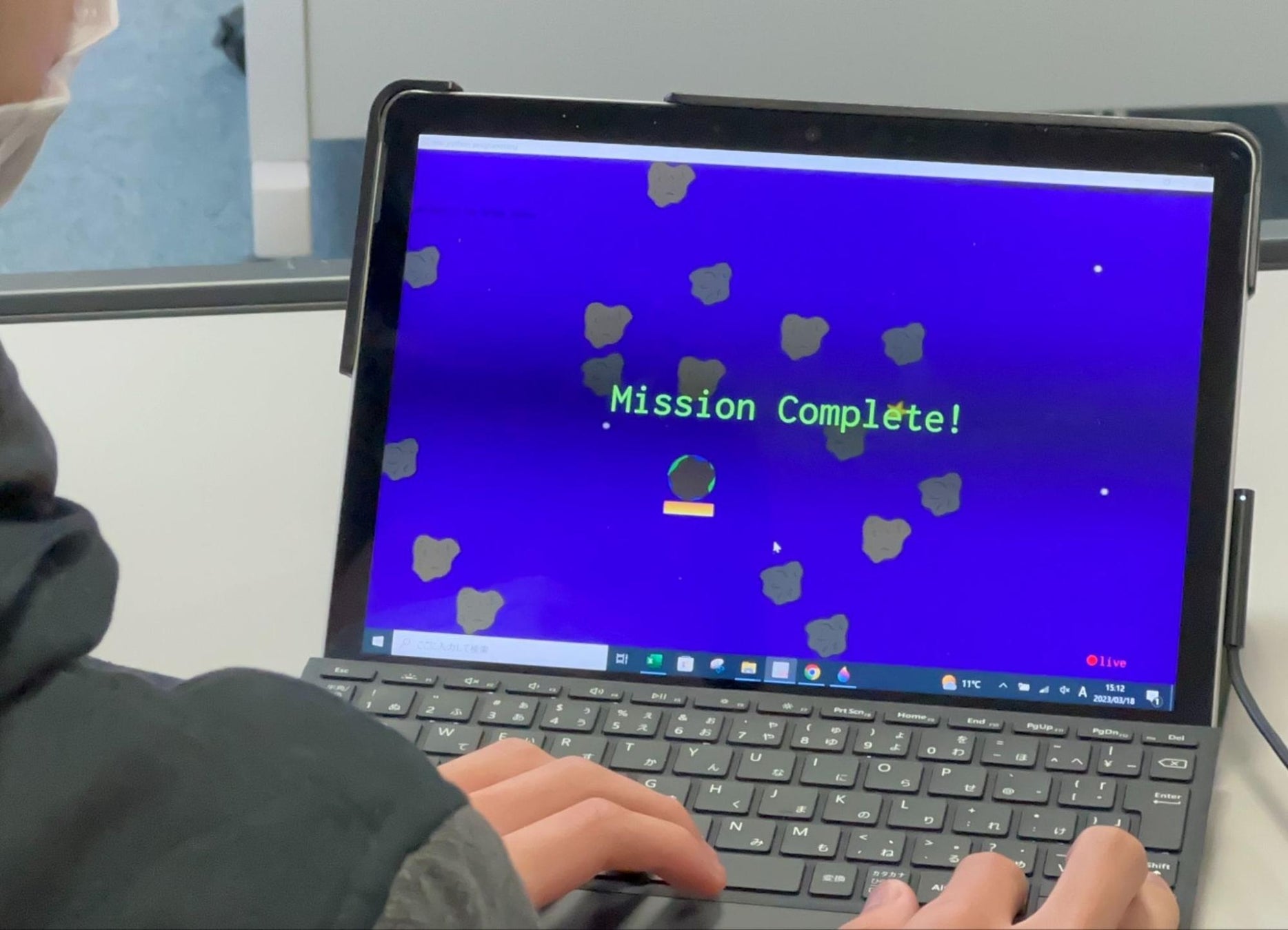 「Python」を使用してオリジナルゲームを制作します。ゲームの企画や使用するイラストの作成など、自由なゲーム作りに挑戦できます。
