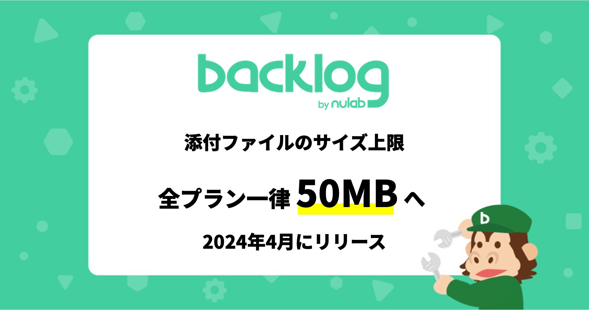 Backlog、添付ファイルサイズの上限を全プラン一律50MBに変更する機能改善を2024年4月に実施