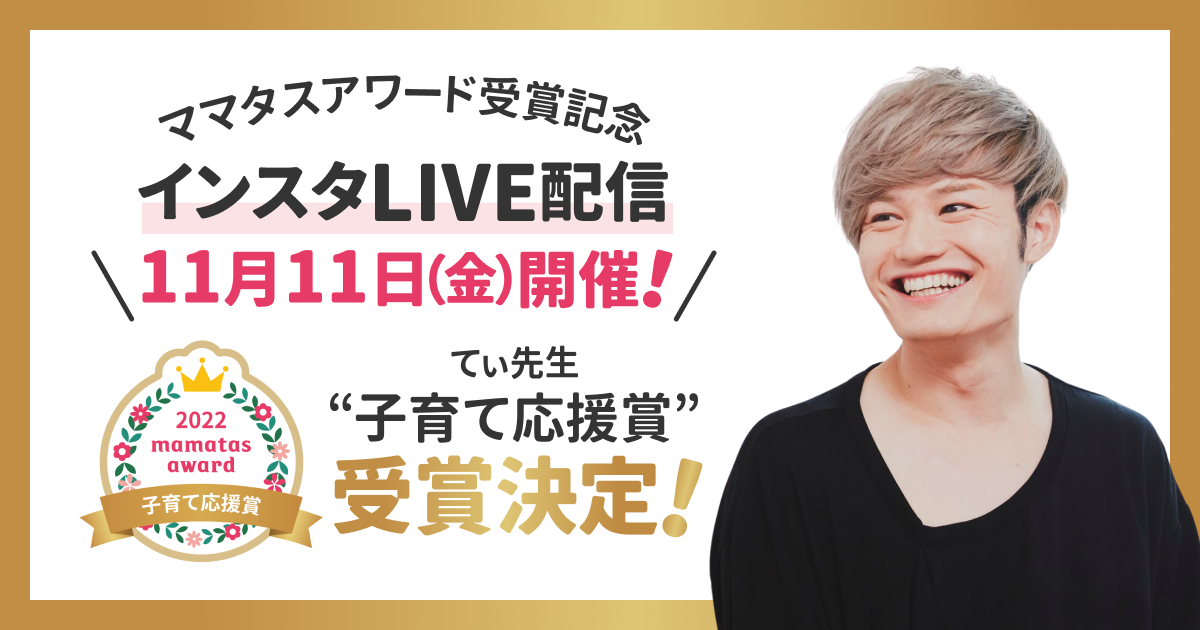 <ママタスユーザー4,731人が投票!>11月11日ママタスアワード2022受賞決定記念、「子育て応援賞」受賞のてぃ先生による「令和の子育てについて考えよう」Instagramライブ決定