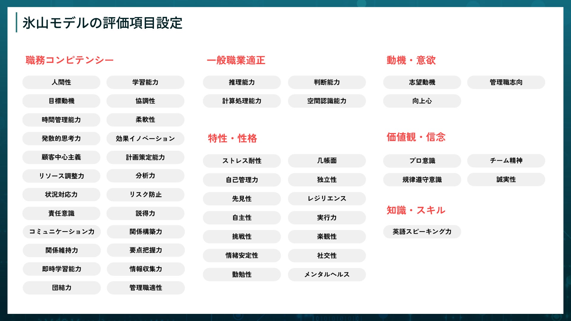 約500万人・8,000社分の面接データと専門家ノウハウを学習した独自AIが、候補者の「思考力」「協調性」「学習意欲」など、履歴書では見えない“本質的な能力”を可視化します。