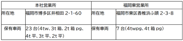 所在地:本社営業所 〒812-0881福岡市博多区井相田2丁目1番60号