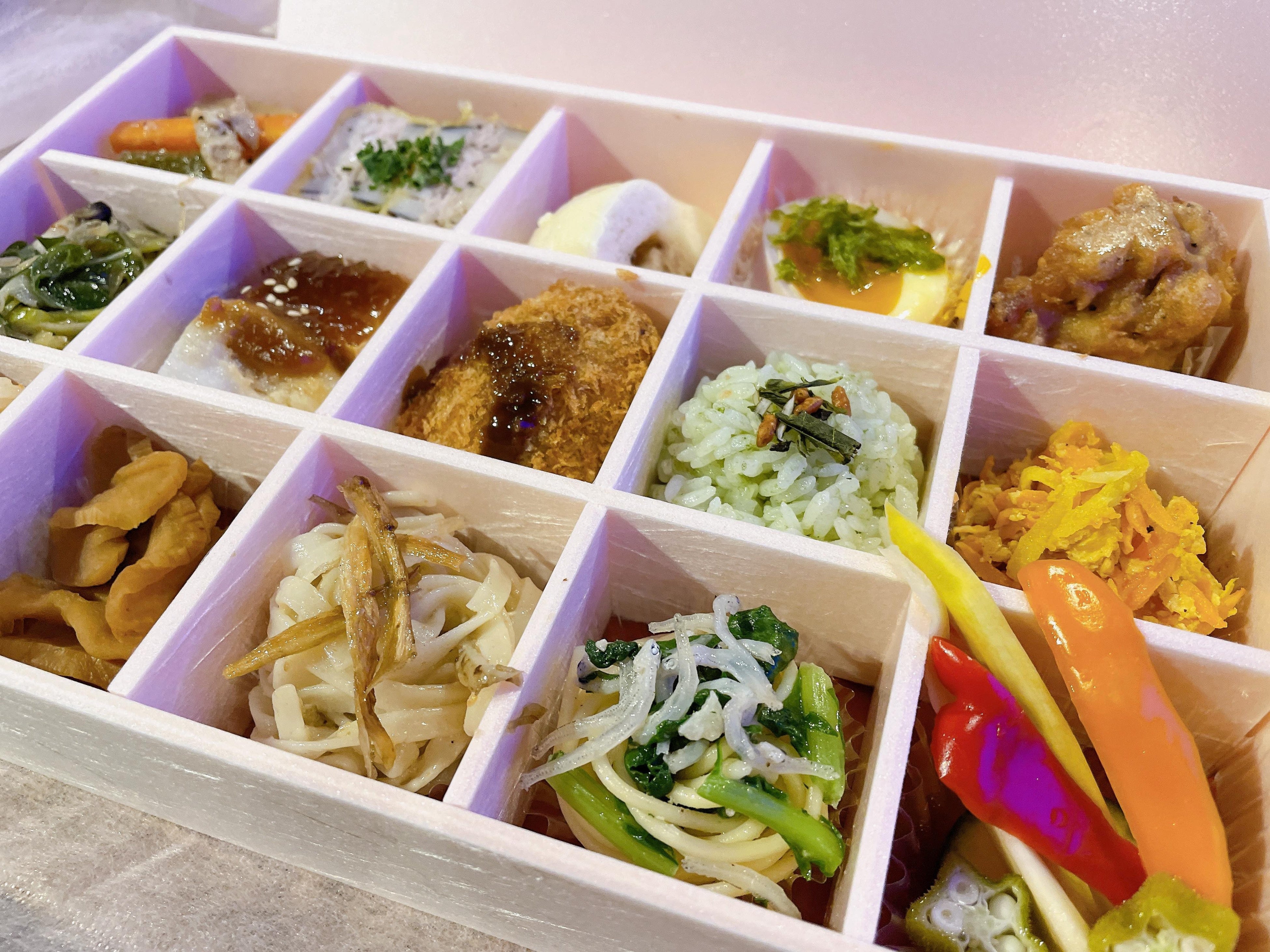 ラディッシュの佐藤シェフによる、焼酎に合わせた「特製shochu弁当」は、この日だけの特別メニュー。新富町産の食材をふんだんに使った15品目が並びました。