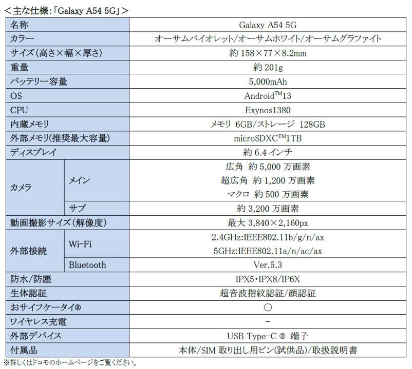 <ドコモ>大容量バッテリー、光を多く取り込めるカメラセンサー、より明るいディスプレイ搭載よくばりな理想を充実機能で叶えるAwesomeなスマートフォン「Galaxy A54 5G」国内発売決定