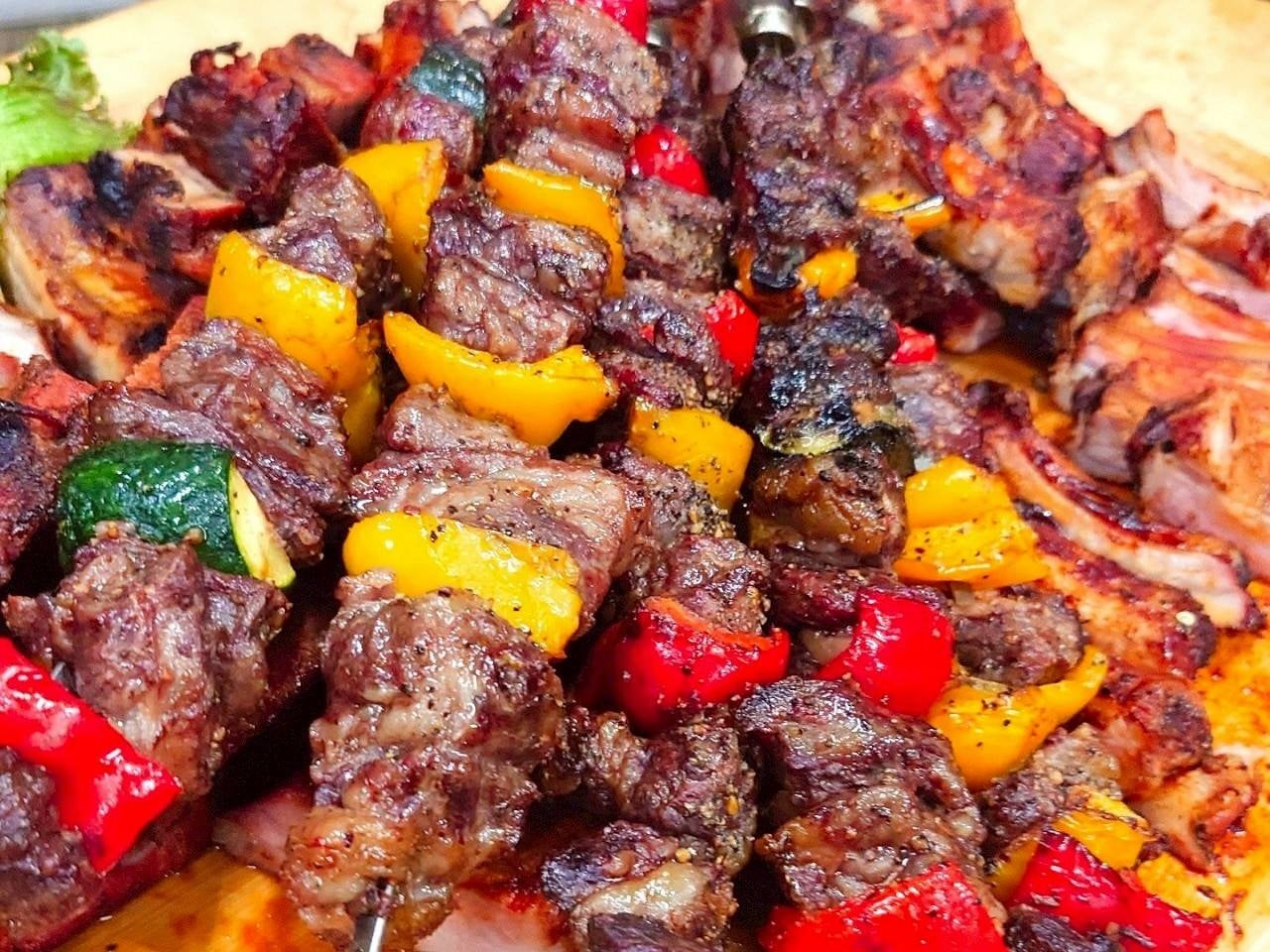 メニューには、ジューシーな串焼きやグリル野菜、こだわりの特製ソースなど、見た目にも華やかな品々がずらり。五感をくすぐる彩り豊かなBBQ体験を、ぜひご堪能ください。