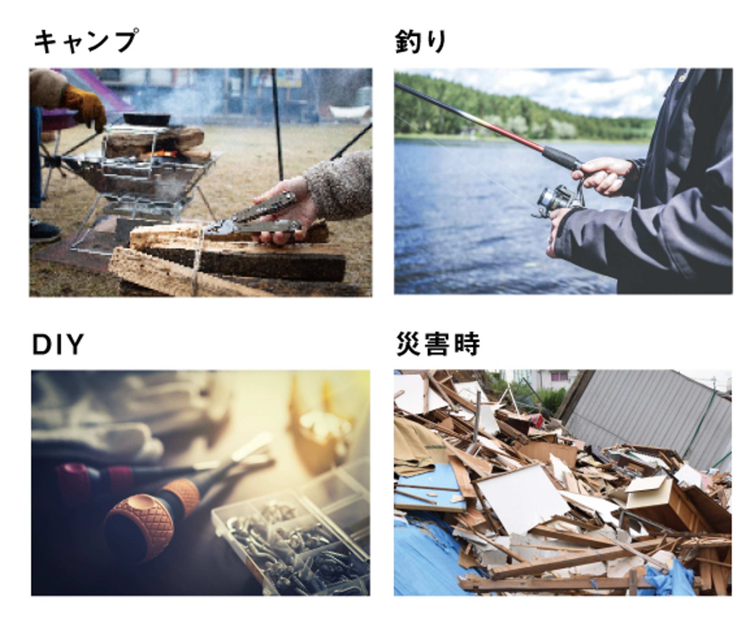 男女問わず使いやすい手のひらサイズでありながら、熱いものを掴む際などに便利なプライヤーや、フェザースティック作りに役立つナイフ、薪や木材をカットできるノコギリなど、16もの機能が搭載されており、幅広い場面で活躍します。キャンプや登山などのアウトドアシーンで使用できることはもちろん、DIYや防災備蓄用として持っておくこともおすすめです。