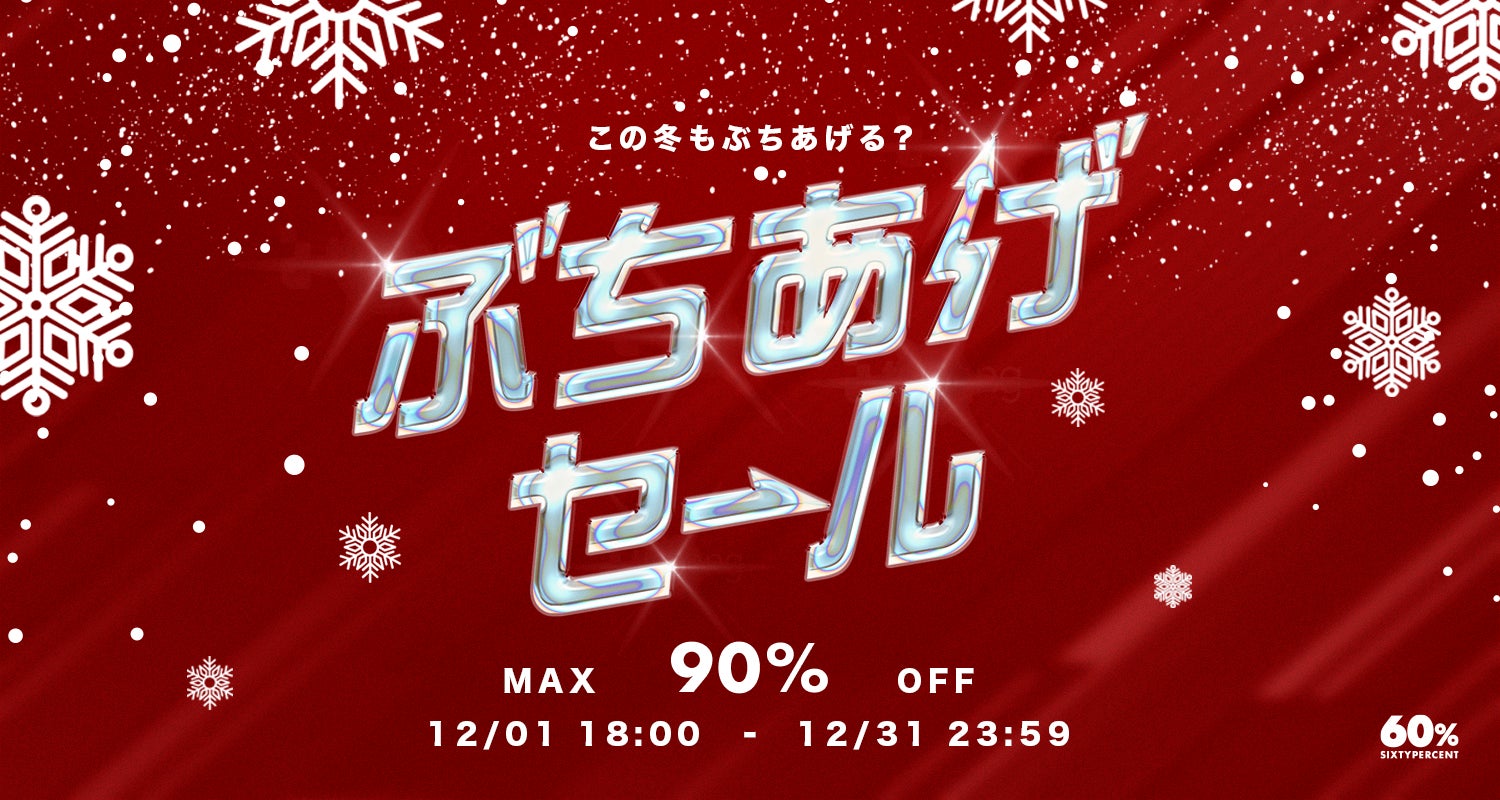【年末特別企画】アジアのファッションブランドを扱う「60%」が最大90%OFF超の大型セール「ぶちあげセール」・100ブランド以上が参加する「冬の福袋」の販売を決定