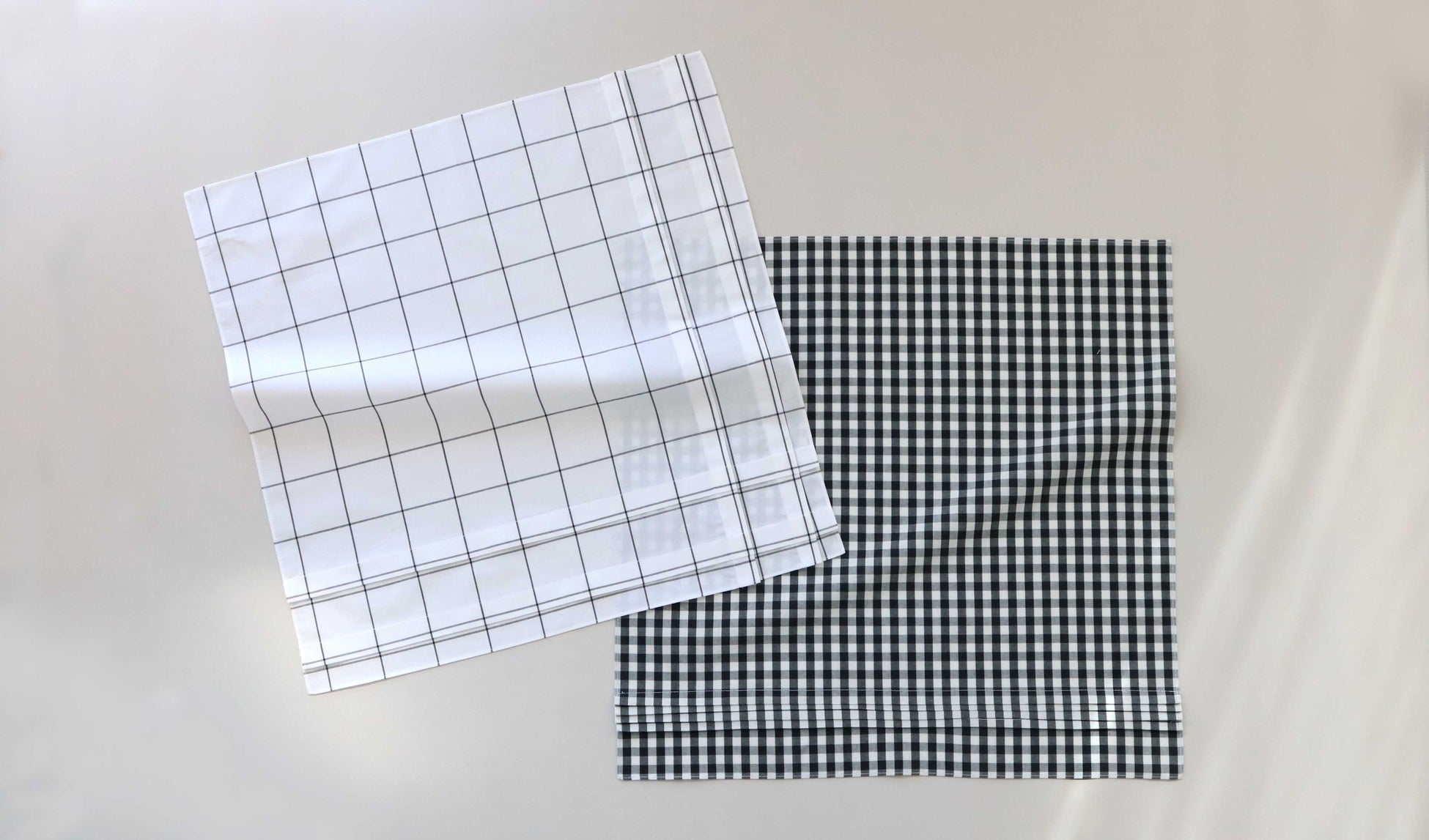一見ベーシックなチェック柄に、複数のタックを施してアクセントを加えた、ベーシックなハンカチーフ。ウィンドウペンとギンガムチェックの2種類のデザインで展開します。