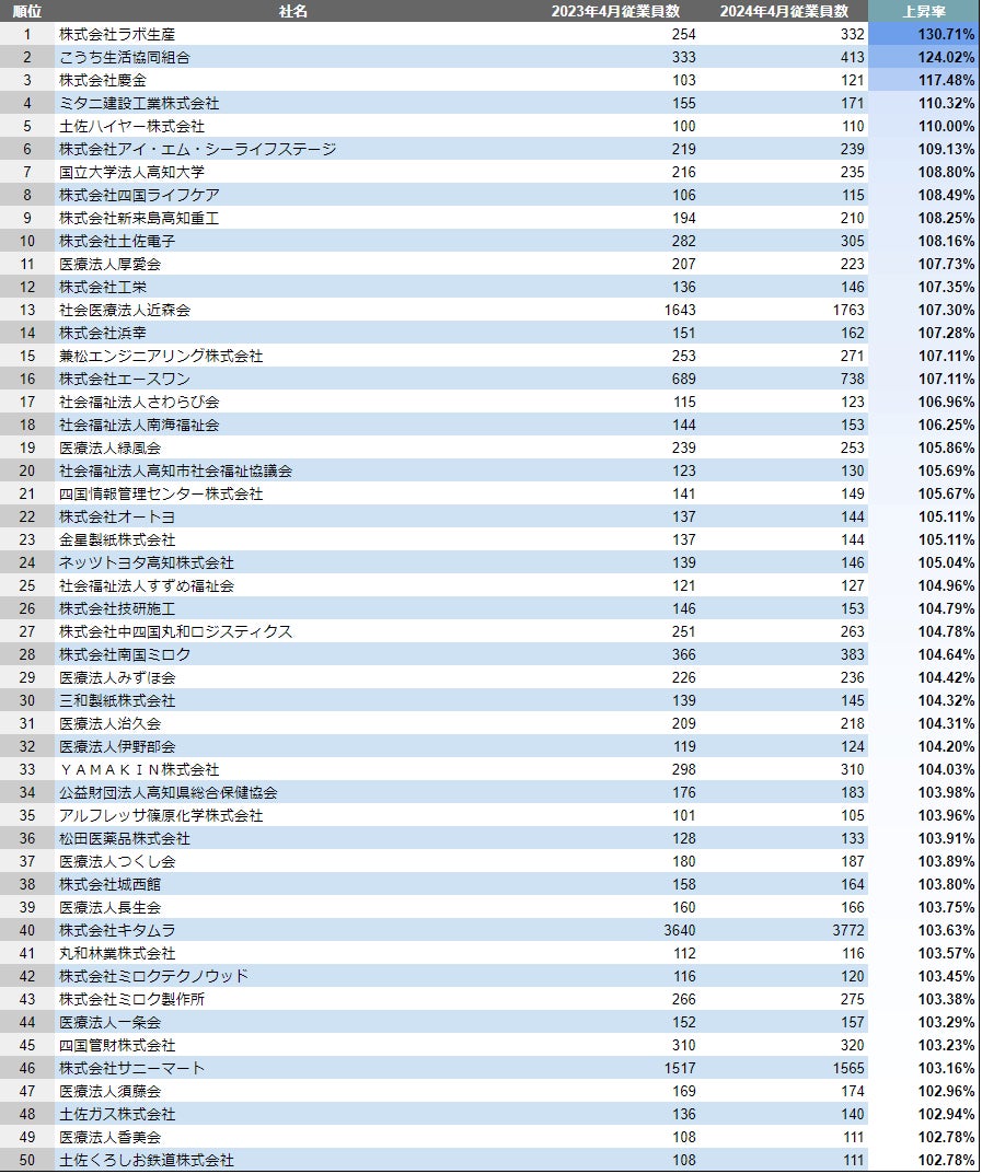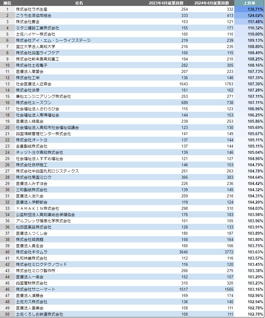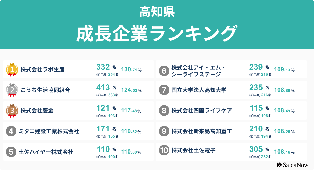 【高知県】成長企業ランキングTOP50!/SalesNow DBレポート
