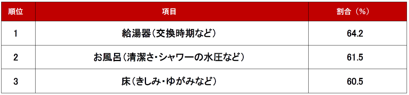 設備(室内)編 第1位 「給湯器(交換時期など)」 64.2%