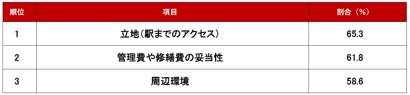 条件編 第1位 「立地(駅までのアクセス)」 65.3%