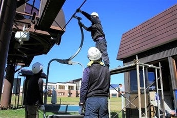 スキージャム勝山 冬季営業に向けリフト取り付けを実施