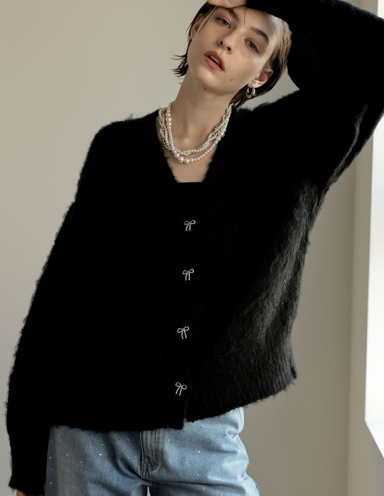 [MEISM by Re:EDIT]リボンボタンシャギーニットカーディガン