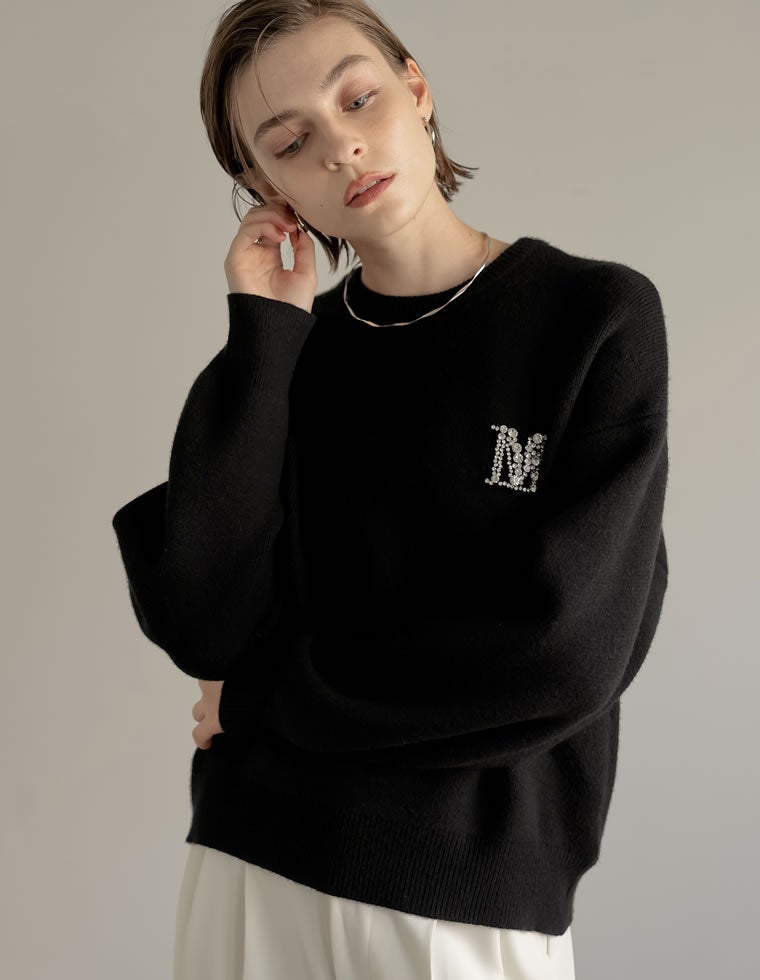 [MEISM by Re:EDIT]ビジューエンブレムニットトップス