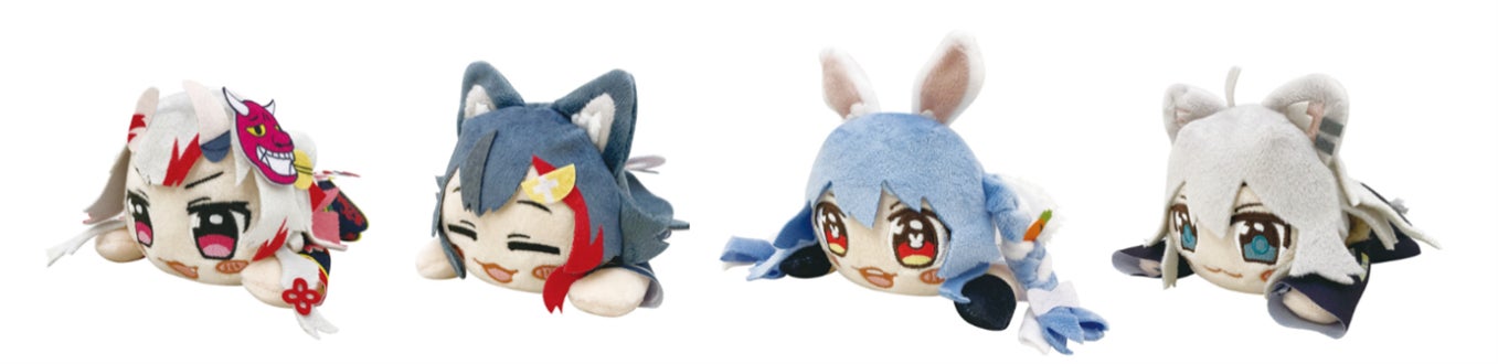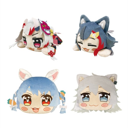 ■百鬼あやめ・大神ミオ・兎田ぺこら・獅白ぼたんの寝そべりポーズがかわいいボイスぬいぐるみ、キュートなデフォルメフェイスのクッションになって登場