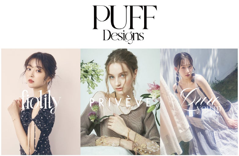 PUFF Designsは2022年に発足したオンラインデパートメントストア。Privève(プリヴェヴェ)を筆頭に、インフルエンサーやタレントをディレクターに起用したブランドを複数取り扱っています。