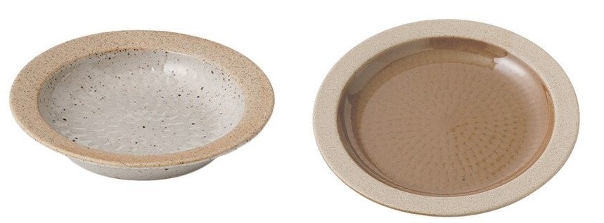 土の風合いと凹型のとびかんな模様の食器が新発売。食卓に馴染みながらも存在感を放ちます。