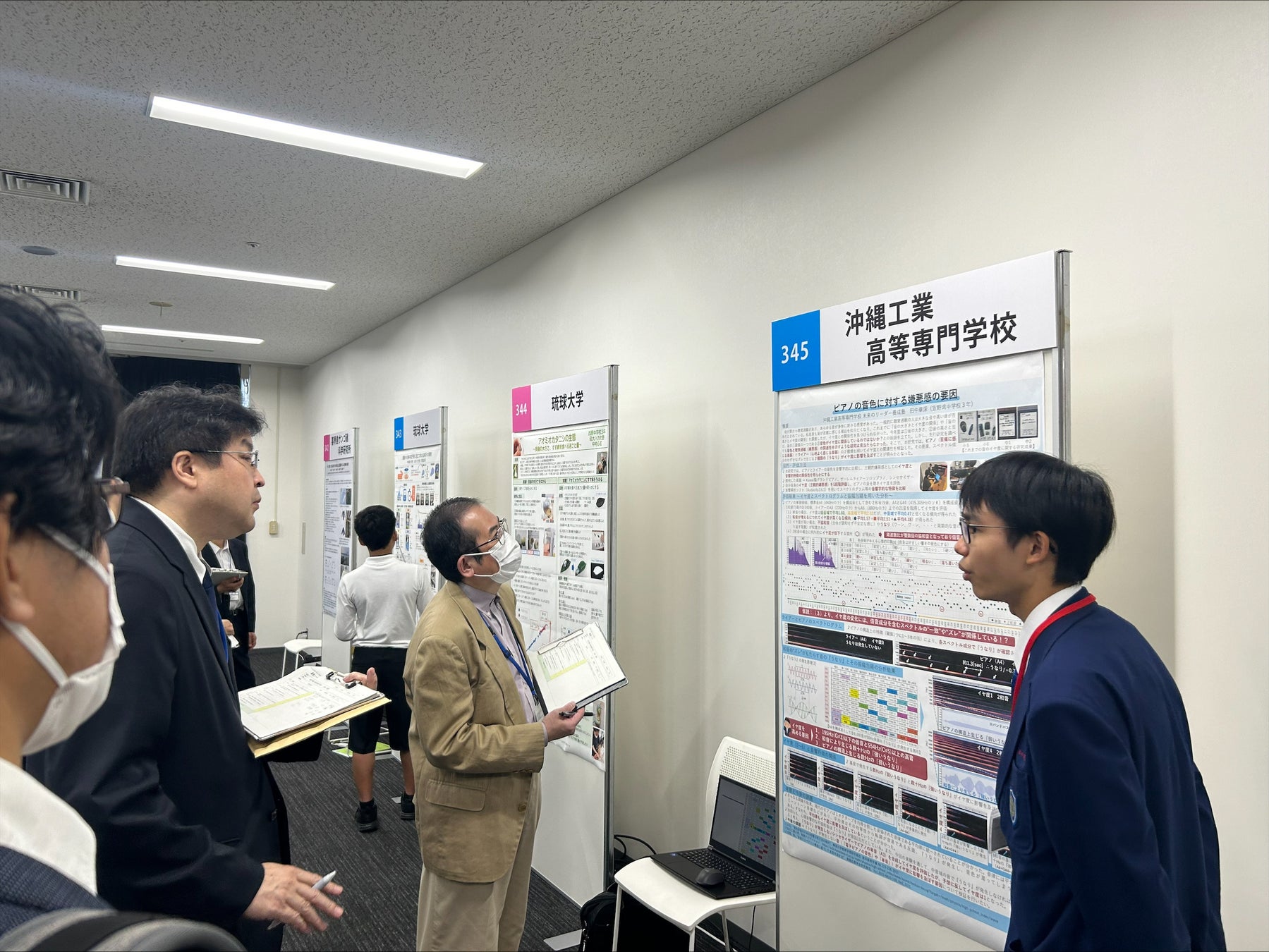 研究発表大賞は今回出場した46件の研究のうち11件に贈られ、沖縄高専からは田中華深さん(宜野湾中学校3年、指導教員:宮城桂(情報通信システム工学科講師))、渡邉智也さん(うんな中学校3年、指導教員:萩野航(生物資源工学科講師)、共同研究者:奥田恭介(株式会社CTIリード環境部))の計2名が出場し、見事2名ともに大賞受賞を果たしました。今回「サイエンスカンファレンス2024」小中の部に出場した機関は18大学、6高専、2研究所の計26機関でしたが、研究発表大賞を受賞した機関のうち高専は沖縄高専のみ、2名の受賞は沖縄高専ほか1大学のみでした。