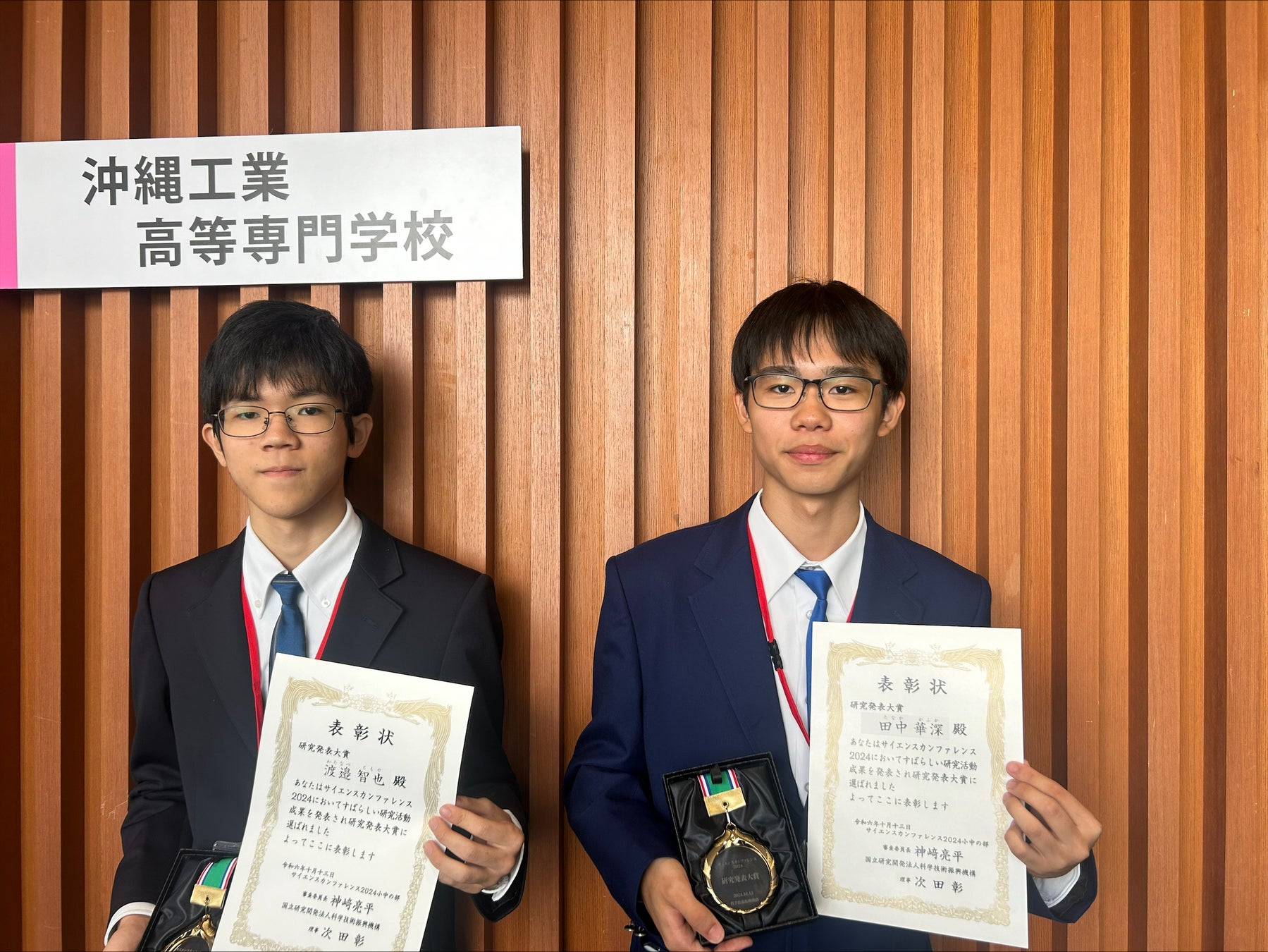 「サイエンスカンファレンス2024」にて、沖縄高専の受講生2名が研究発表大賞を受賞