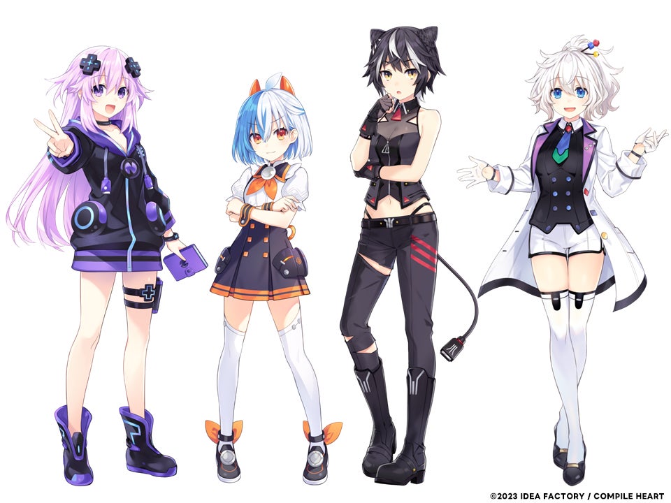 本作では、謎のスマートフォン端末『マジフォン』によってシェアが占有された世界を舞台に、4人の「女神候補生」たちが、携帯ゲイム機のシェアを取り戻すための物語を繰り広げます。