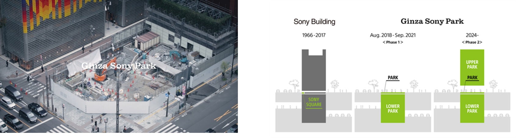 現在は建て替え工事を進めており、2024年に新・Ginza Sony Parkが完成する予定です。