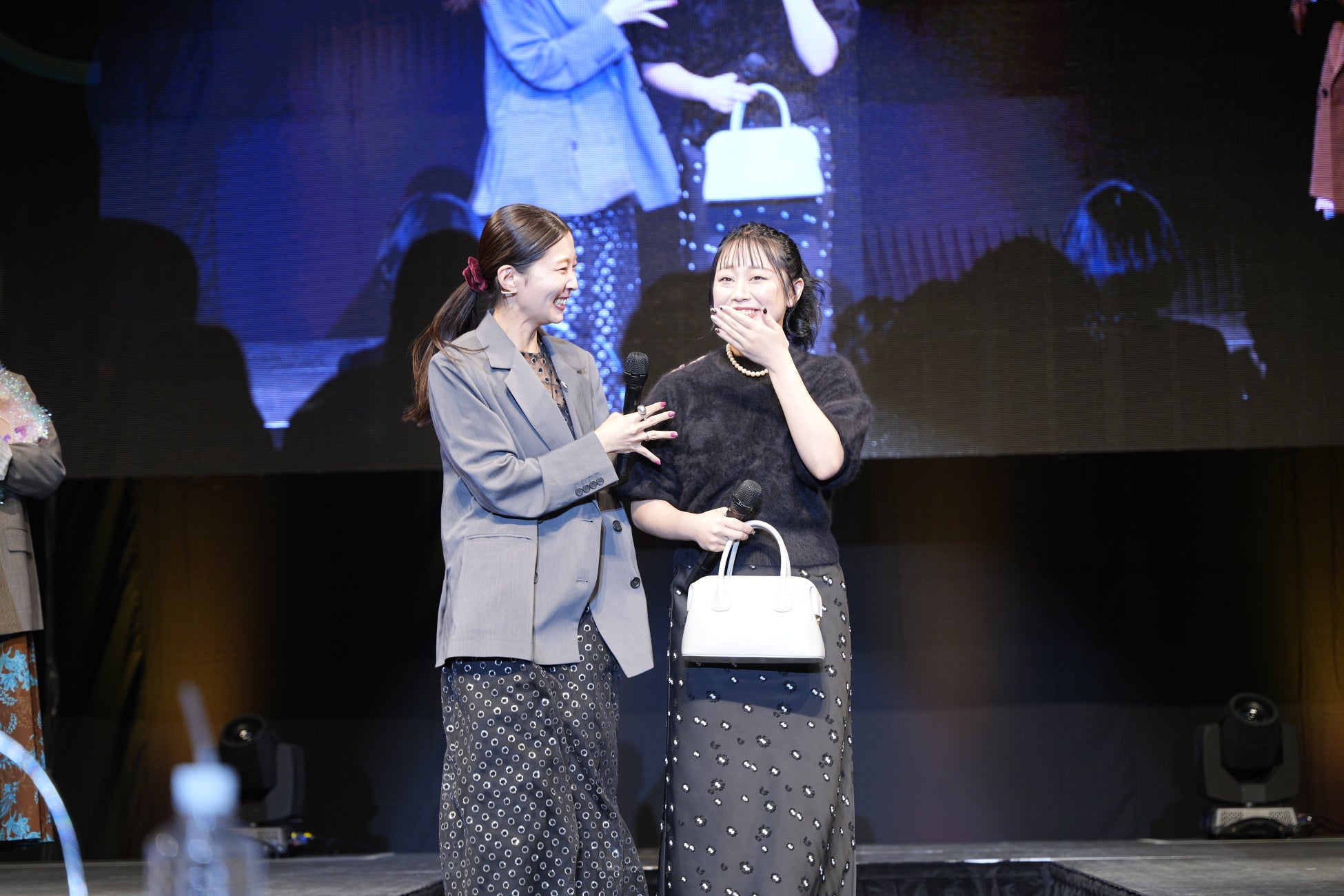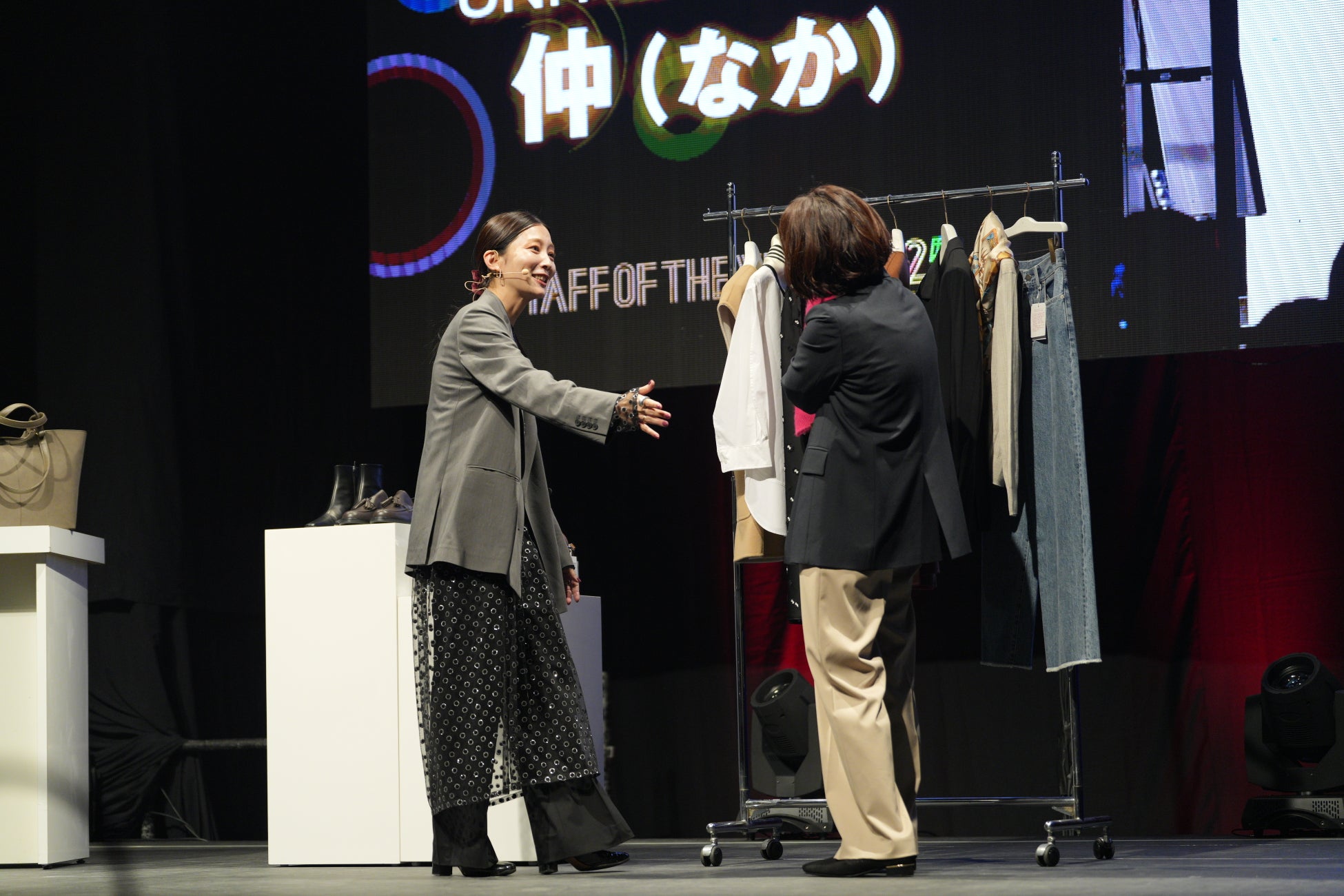 2023年大会でのグランプリ受賞後、今回で3年連続のファイナルステージ参加となった仲。3人の子育てをしながら店頭に立ち、スタイリング写真を撮影してSNS発信する、そんな忙しい日々の中で大切にしてきた思いとは、オンラインでもリアルでもお客様と向き合う気持ちは何一つ変わらないということ。オンラインでも商品やスタッフを身近に感じていただける、そしてお客様の明日を創ることができる、洋服を通じて人とつながることができるこの仕事がやはり大好きとスピーチしました。この結果、スピーチ審査は2位となり、ROUND1・2の合計得点全体2位(同得点で1位だが規定により2位)で決勝進出を果たしました。