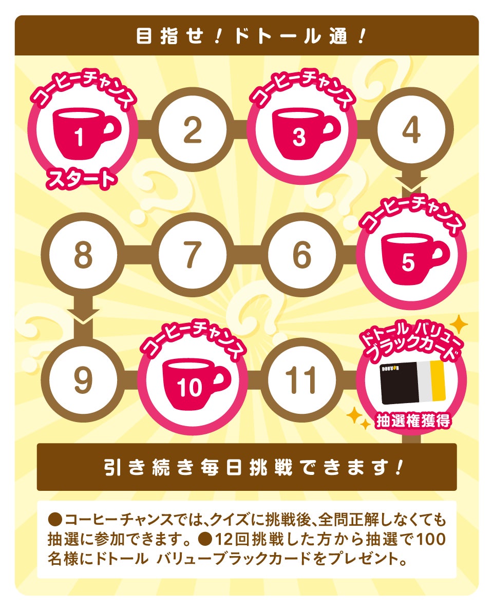 期間中、クイズに12回以上挑戦した方の中から抽選で100名様に、ドトール バリューブラックカードをプレゼント!