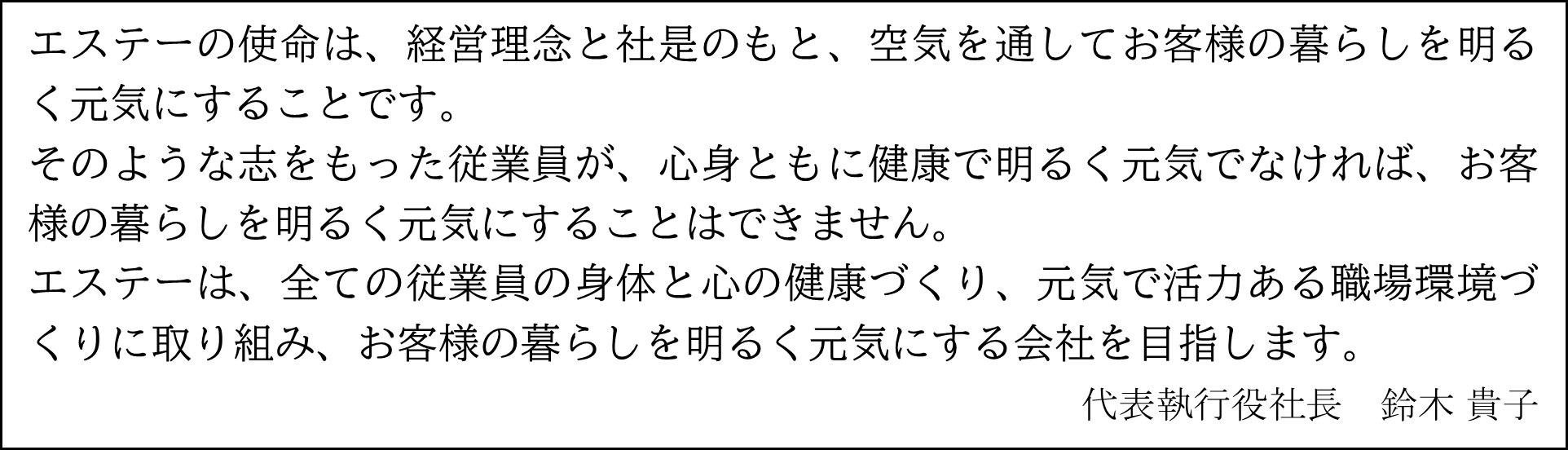 エステーでは、今後とも従業員の健康を保つとともに一層の増進に努め、一人ひとりが健康で元気にワークライフバランスを実現できる活力ある職場環境を目指していきます。