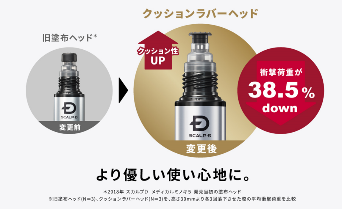 スカルプD メディカルミノキ5 プレミアムは、頭皮にやさしいヘッドを追求し「クッションラバーヘッド」 を採用。
