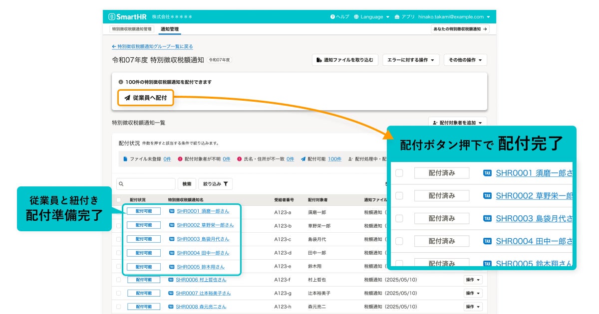 <「SmartHR」上の社員番号を紐づけて、簡単・正確に配付が可能>