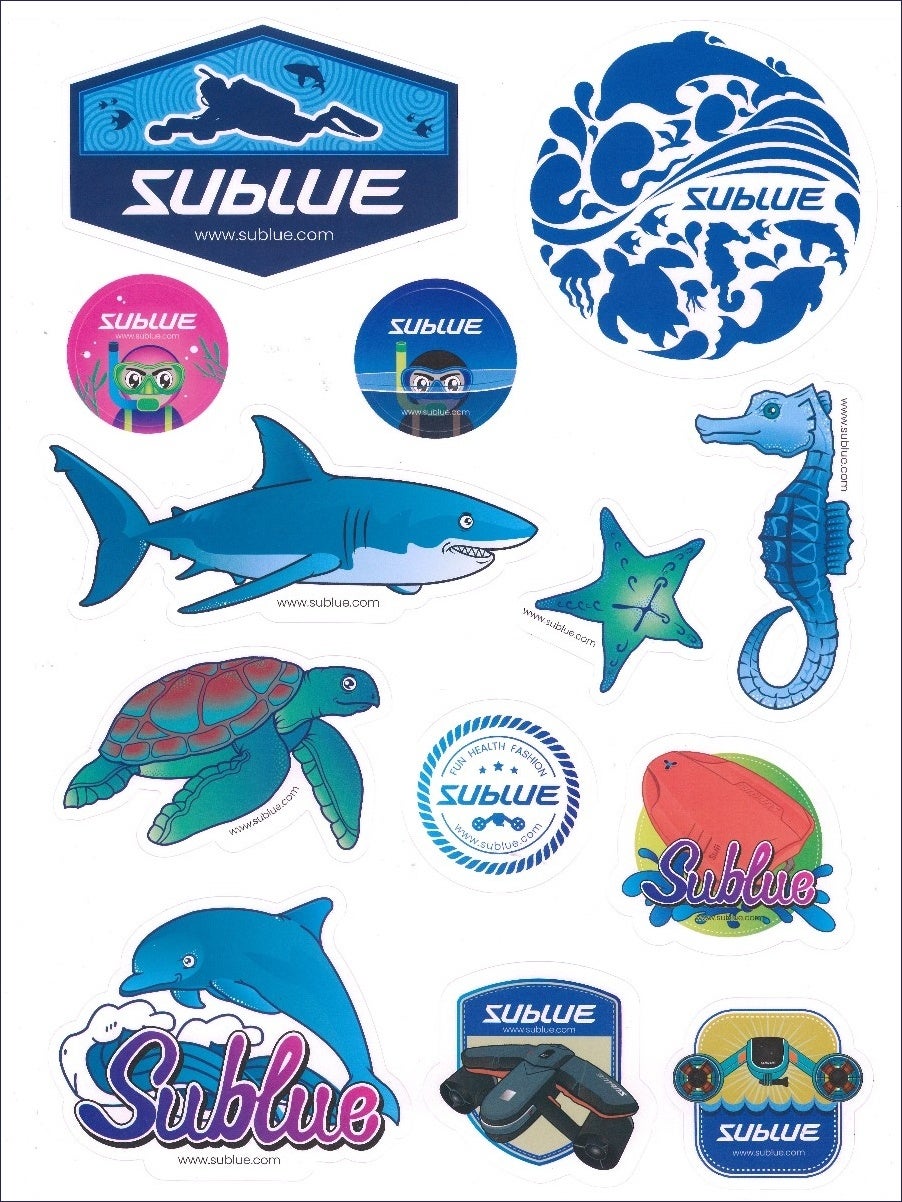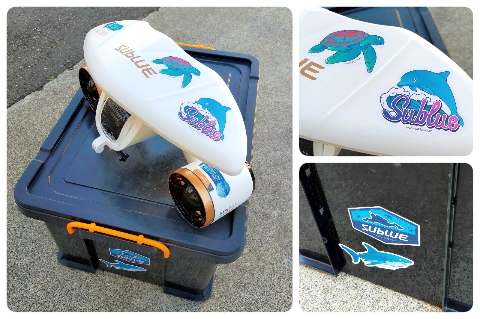 ステッカーは防水仕様で、水中スクーターや持ち運び用のケースなど、ウォーターアクティビティでお使いのグッズに貼ってお楽しみいただけます。