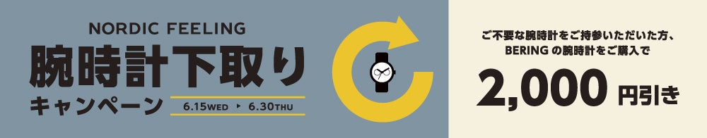 アイ・ネクストジーイー株式会社は、直営店NORDIC FEELINGとBERING SHOP SHINJUKUにて、腕時計下取りキャンペーンを2022年6月15日(水)より開始します。お持ち込み頂いた方はBERINGウォッチを2,000円オフでご購入いただけます。