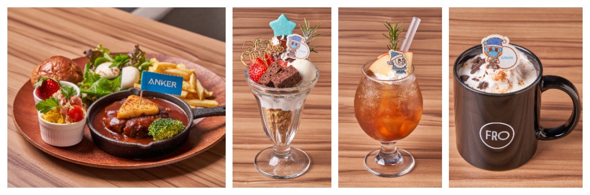 期間中は、デミグラスハンバーグとトマトチキン煮込みのメイン2種類から選べる「Ankerクリスマスプレート」、クリスマスらしいチョコブラウニーと苺を組み合わせた「Ankerクリスマスパフェ」、生姜を効かせたリンゴの紅茶シロップをソーダで割った冬らしい味わいの「ジンジャーアップルティースパークリング」やミルクフォームとふわふわマシュマロにクッキーの食感がアクセントの「マシュマロミルクココア」といった4種類の特別メニューが味わえる他、クリスマスをイメージした店内装飾や最新のAnker製品を試せる充電スポット、人気のAnkerグループ製品やオリジナルデザインステッカーが当たるクリスマスプレゼント抽選会を開催致します。