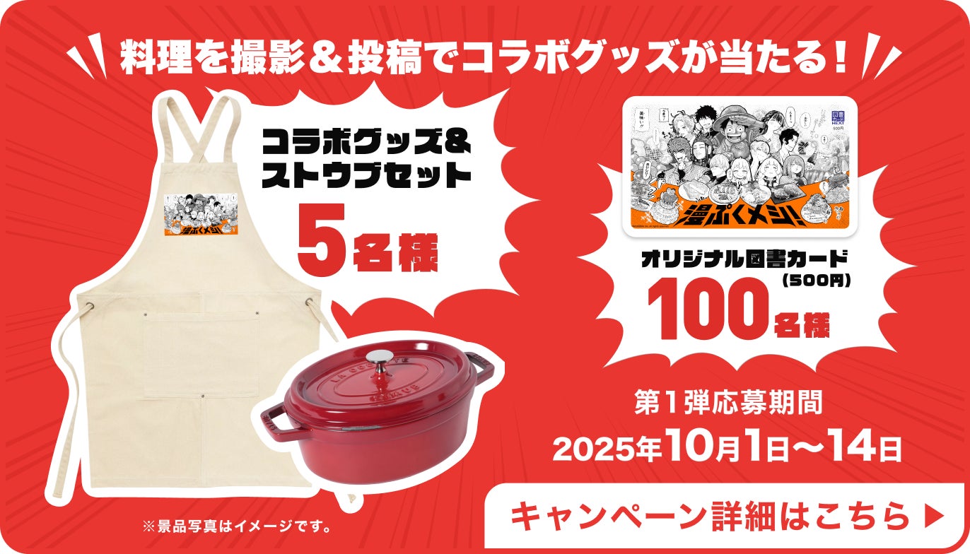 クラシル株式会社(本社:東京都港区、代表取締役社長:堀江裕介、以下「クラシル」)は、「秋マン!!2025」合わせでオープンする集英社の新サービス『漫ぷくメシ!』とのコラボを2025年10月1日(水)より開始いたします。を2025年10月1日(水)より開始いたします。