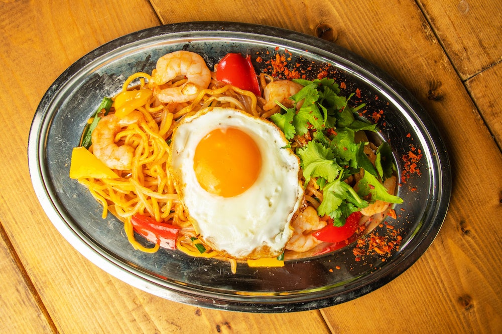 目玉焼きを崩してパクチーを絡めれば、止まらない味わい!