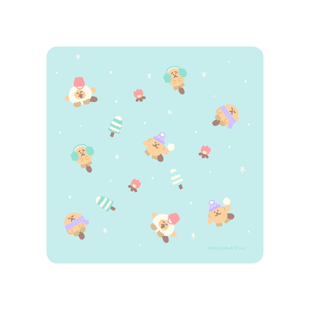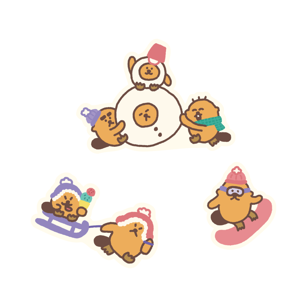 マフラーを巻いたり、雪だるまに変身したりと、冬らしい装いのラッコズたちが登場する新アートをあしらった、ステッカーやアパレルなどのグッズを販売します。