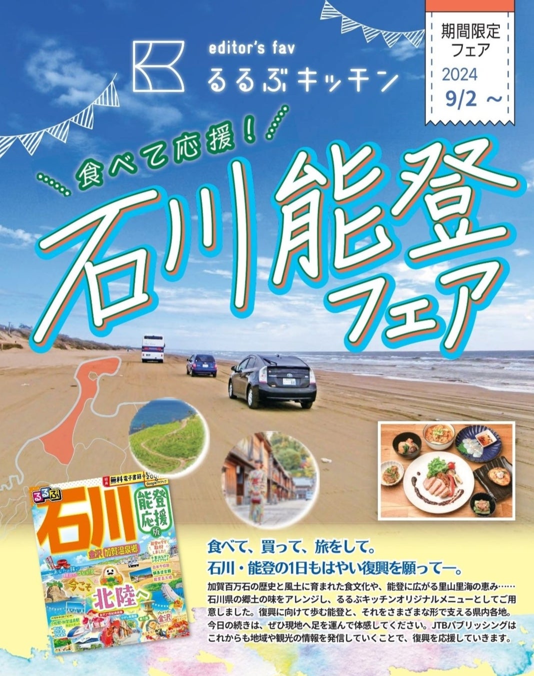 JTBグループで旅行・ライフスタイル情報を提供する株式会社JTBパブリッシング(東京都江東区、代表取締役 社長執行役員 盛崎宏行)は、『るるぶ石川 金沢 加賀温泉郷 能登応援版』を8月21日に発売しました。